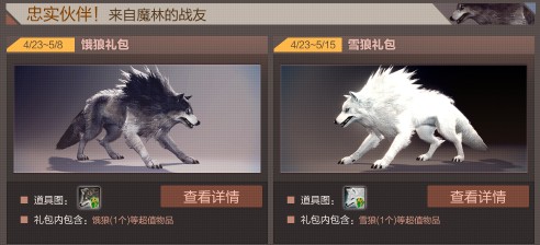 更值得一提的是,4月23日至5月8日期间,商城将推出“饿狼礼包”和“雪狼礼包”,以超实惠的价格带给大家物超所值的内容!你还在等什么?赶快去把它带回家吧!